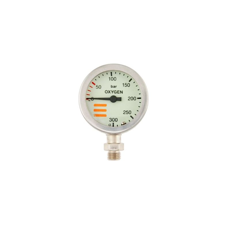 OXYGEN pressure gauge 0-450bars submersible diameter 52mm In stock OXYGEN pressure gauge 0-450bars submersible diameter 52mm