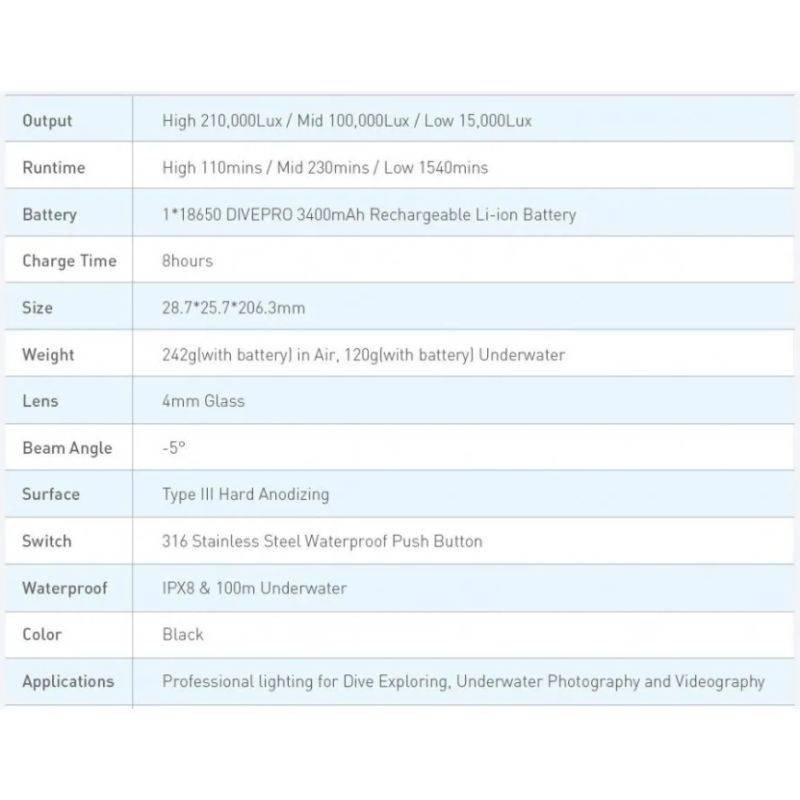 Lampe de plongée DIVEPRO S10 1000Lm angle 6° DIVEPRO Expédition sous 5 jours Lampe de plongée DIVEPRO S10 1000Lm angle 6°