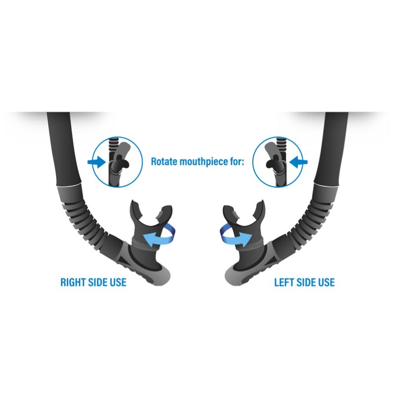 Le SEAC Reverse est un tuba polyvalent et ergonomique, conçu pour offrir une expérience de plongée confortable.Ce tuba innovant est équipé d'un embout en silicone souple, qui peut être positionné à droite ou à gauche en fonction de vos préférences personnelles ou des méthodes d'enseignement que vous suivez.